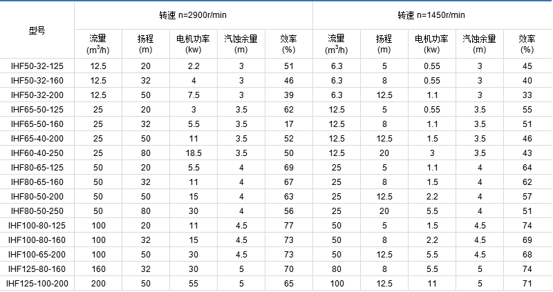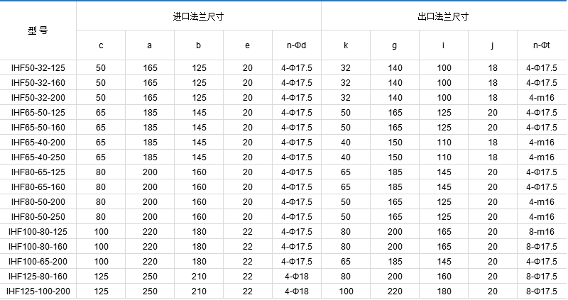 IHF centrifugal pump designed according to international standards, pump using plastic lined metal casing, impeller and pump cover are metal inserts outsourcing fluorine plastic alloy pressing, seal with external-mounted advanced bellows mechanical seal, static ring selection 99.9% alumina ceramic ring with PTFE true filling material, which is characterized by good corrosion resistance, wiping sealing.
