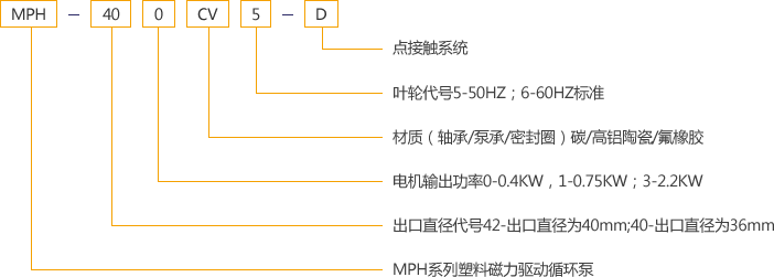 MPH plastic magnetic pump complies with JB/T7742-1995 Standard for Small Magnetic Transmission Centrifugal Pump.Its flow-through parts adopt PPS with corrosion resistance to most acid,alkali and salt (except oxidable acid like strong sulfuric acid,nitric acid and aqua regia),Its performance is close to the chemical performance of F4,which can resist to most organic solvents under 100℃,especially to the mixture of gas and carbinol,Thus it is an ideal pump for acid and alkali industries.