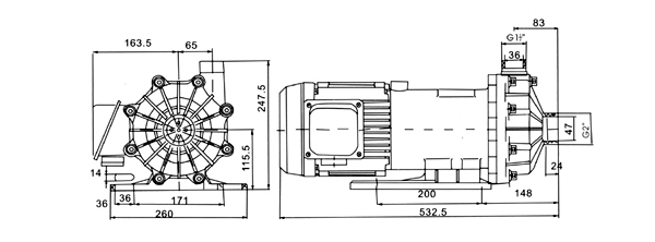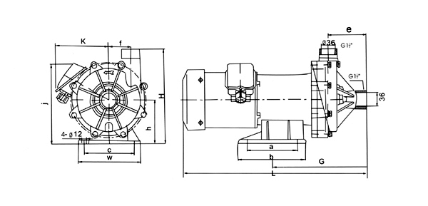 Magnetic Drive pump of MPH-400 cam be equipped with the motor of 0.3KW,and its conection is 70 of the IEC standard.