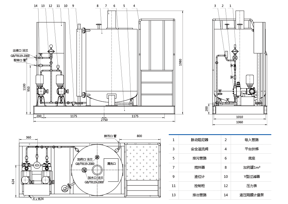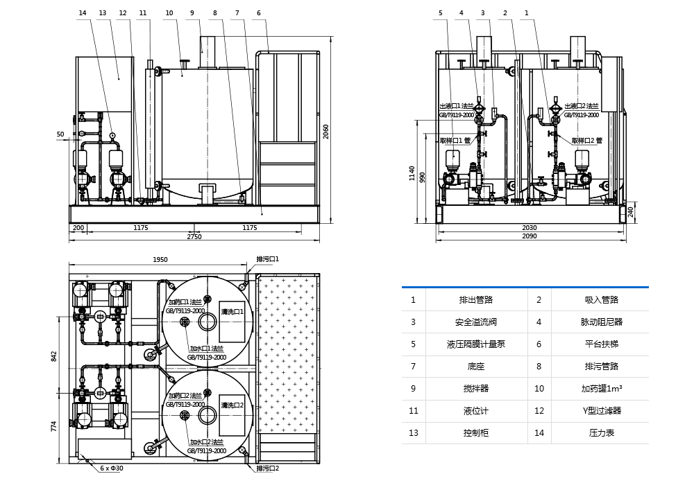 裝置具有結(jié)構(gòu)緊湊,體積小,耐腐蝕,耗能低,操作維護(hù)方便。有儲存藥劑,混合和外輸?shù)墓δ堋?/span>