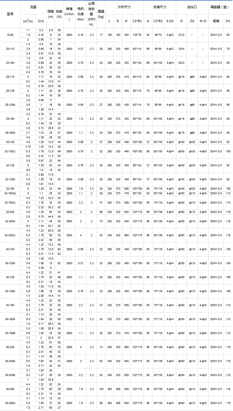 2、葉輪直接安裝在電機(jī)的加長(zhǎng)軸上,軸向尺寸短,結(jié)構(gòu)緊湊,泵與電機(jī)軸承配置合理,能有效地平衡泵運(yùn)轉(zhuǎn)產(chǎn)生的徑向和軸向負(fù)荷,從而保證了泵的運(yùn)行平穩(wěn),振動(dòng)小,噪音低。